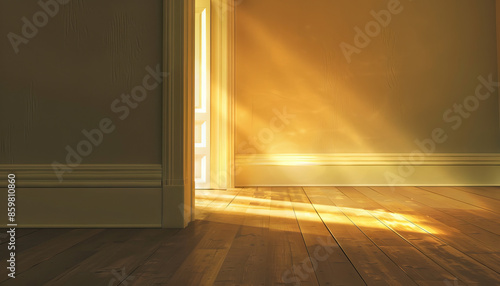 Creepiness is the creaking floorboard in the empty house: Illustrate an empty house with a single floorboard creaking ominously, symbolizing the eerie feeling of being alone in a silent, empty space