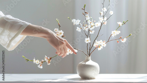 生け花を嗜む日本女性の繊細な手つき
