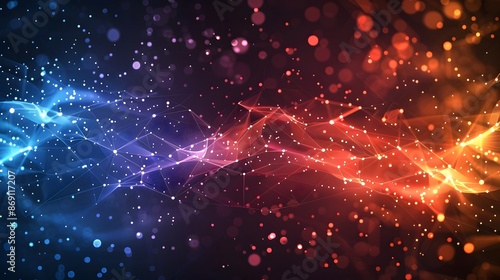 Dynamic Clash of Futuristic Gradient Particles and Lines in Abstract Technology Background
