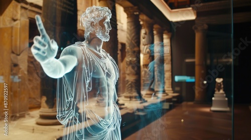 Ancient statue pointing with augmented reality details
