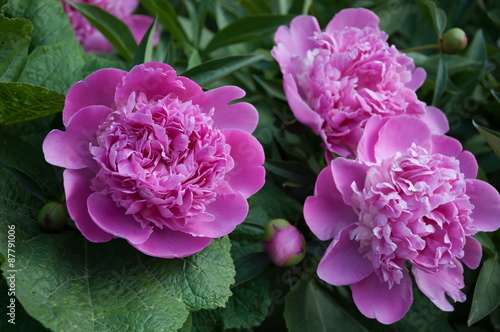 Красивые розовые пионы в саду.