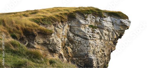A steep cliff face with grass and rocks in ireland, cut out - stock png.