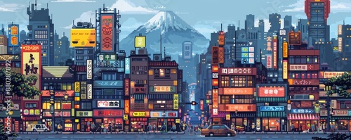 A pixel art rendition of a bustling 8-bit city, its inhabitants going about their daily lives in a charmingly pixelated world.