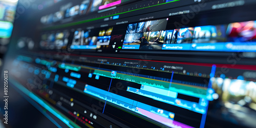 "Editing Software Display, Video Timeline View, Digital Editing Tools, Multimedia Interface