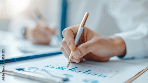A person is writing with a pen on a piece of paper. Concept of focus and concentration, as the person is deeply engaged in their work
