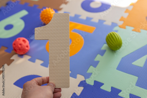 jedynka jako roczek dziecka koncept pierwszego roku zycia malucha. koncept zycia, rodzicielstwa jak i kosztów poniesionych w trakcie wychowywania