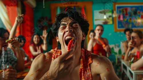 The Mexican holiday of Cinco de Mayo. Eating hot pepper.
