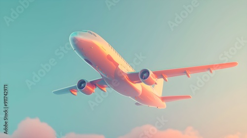 samolot, niebieski, pastelowy, styl cartoonowy, jasne kolory, ilustracja 3D, minimalistyczny, wysokiej jakości, flat lay, projektowanie, wektor, proste formy, elegancki, tło, podróż