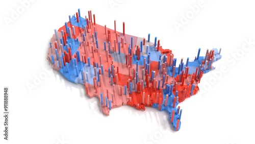 usa map of republicans and democrats vote counting data visualization of the electoral colleges 3d representation. Can be used to represent president or senate election, swing states or democracy