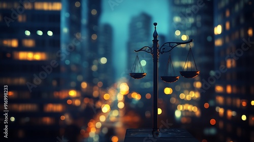 Concepts of law order regulation and digital justice Judgment Legislature Litigation Civil Rights and Social Justice Cityscape at night : Generative AI