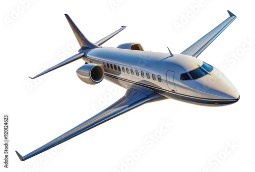 PNG Private jet flying over clear blue sky, cut out