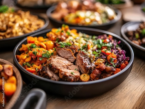 Communal dining, shared meals, vibrant atmosphere, social connections