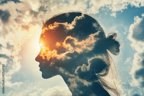 A dreamy silhouette blending with clouds at sunset, capturing the essence of introspection and serenity in nature's embrace