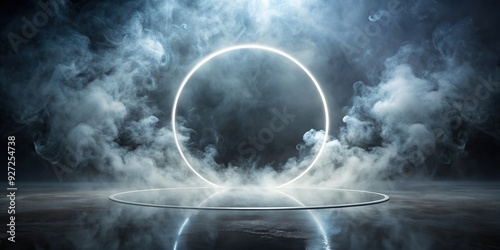Enigmatic Equilibrium: A perfectly balanced circle sits within a smoke-filled void, conveying stability and enigma.