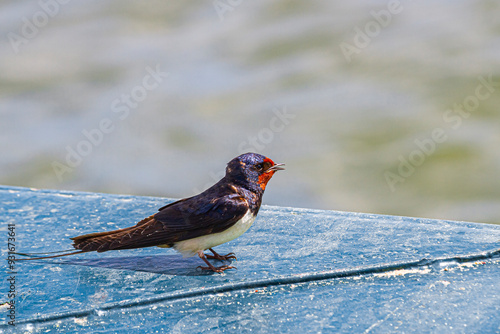 Jaskółka dymówka odpoczywająca przy wodzie | Barn Swallow Resting by the Water (Hirundo Rustica)