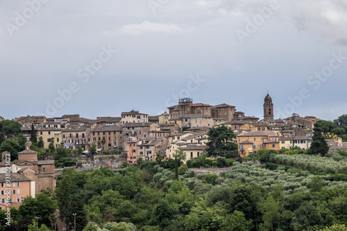 Ogólna panorama Sienny w letnie pochmurne popołudnie