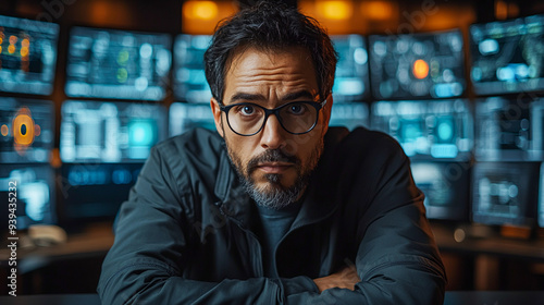 Cybersecurity Specialist Battling Massive Digital Attack in Command Center