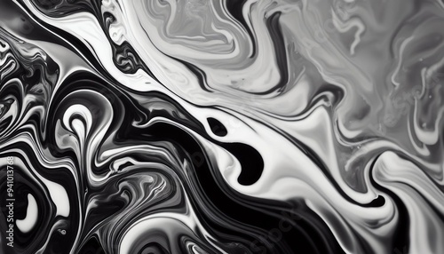 抽象 アート 流動 インク 渦巻き モノクロ コントラスト マーブル テクスチャー パターン 波 優雅 流れ 曲線 ダイナミック 有機 調和 バランス 滑らか ソフトフォーカス