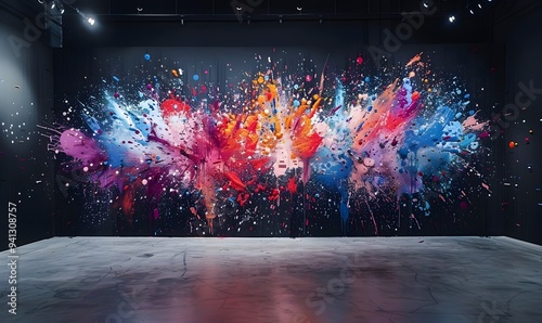 Abstract Art Installation, An abstract art installation in a blank white studio against a black background