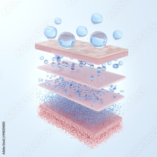Diverse hyaluronic acid types in every skin layer. 3D rendering