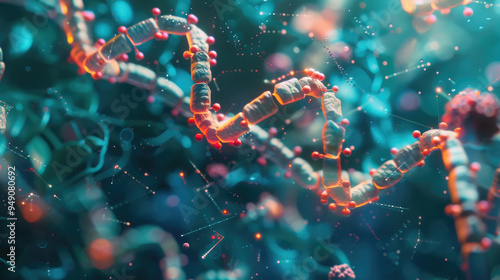 The structure illustrates a vibrant DNA double helix with molecular features, highlighting biological complexities in a scientific setting