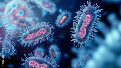 Group of poxviridae family virus. Monkeypox viruses, pathogen close up. Viral disease epidemic