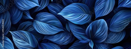 Stylishly designed abstract leaves. The leaves are drawn in shades of dark blue, creating a luxurious and elegant feel.