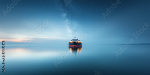 Oil tanker operating in night or dawn seas. Backbone of global trade and logistics. beautiful stars in the dusk night sky. hand edited Generative AI.