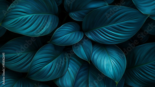 #1496565140leaves of Spathiphyllum cannifolium, abstract green texture, nature background, tropical leaf