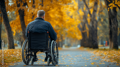 Mężczyzna z fizyczną niepełnosprawnością na wózku inwalidzkim, ilustrujący temat dostępności i wsparcia w codziennym życiu.