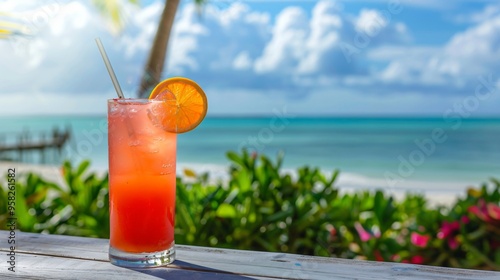 Bay Breeze Cocktail on Patio Table with Scenic Ocean View