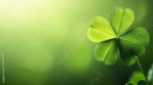Na zielonym tle widnieje czterolistna koniczyna, będąca klasycznym symbolem szczęścia.