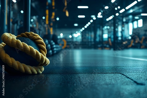 sport, aktywność fizyczna, sprzęt sportowy, buty do biegania, hantle, woda, bidon, podłoga w siłowni, dynamiczny, ruch, energia, fitness, trening, siłownia, kondycja, bieganie, ćwiczenia, zdrowy styl