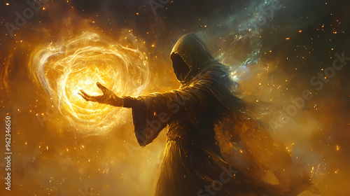 Mystical sorcerer summoning elemental magic. Sorcerer. Illustration