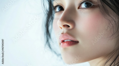 Close-up Portrait of a Woman with Soft Makeup and Black Hair