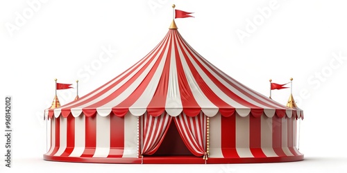 Classic Red and White Striped Circus Tent, 3D Render, Isolated, White Background, Circus, Big Top, Entertainment
