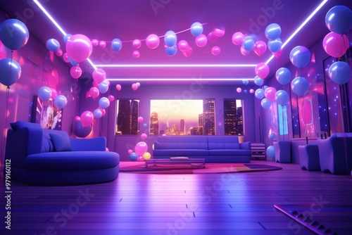 Night party room lighting balloon purple.