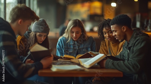 A diverse group of friends gathers at a small cafe table, engrossed in deep conversation while sharing ideas and laughter on a cozy afternoon