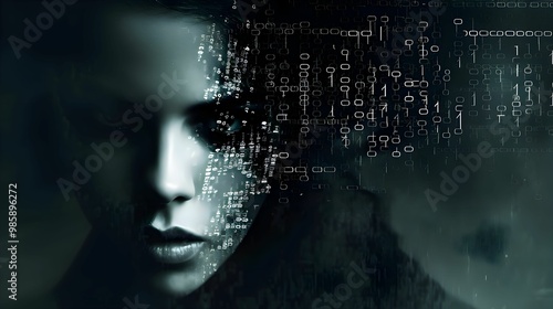 człowiek, kod, cyfry, cyfrowy, technologia, binarny, ciało, transformacja, minimalizm, portret, kodowanie, ciemne tło, futurystyczne, połączenie, ludzki, innowacje, technologie, nowoczesność, cyfrowe,