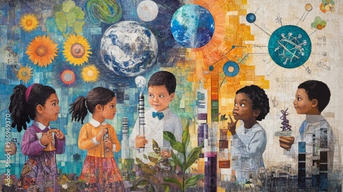 A colorful collage showcasing children envisioning various future careers, from artists to scientists, surrounded by inspiring symbols representing their dreams and ambitions