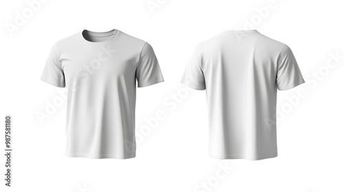 T-shirt w kolorze białym, pokazany w dwóch ujęciach: frontowym i tylnym na przezroczystym tle.