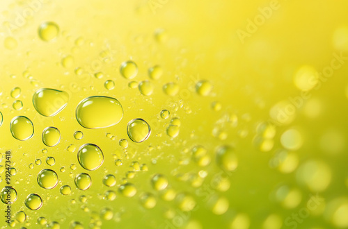 Oil droplets on water yellow background