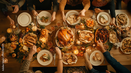 top down of thanksgiving traditional dinner for friends and family