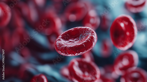 Zbliżenie na komórki krwi ukazuje różnorodność ich kształtów i funkcji. Erytrocyty, żywe i elastyczne, sprawnie przemieszczają się przez wąskie naczynia krwionośne.