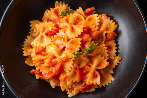 Farfalle al pomodoro, classica ricetta di pasta italiana, dieta mediterranea