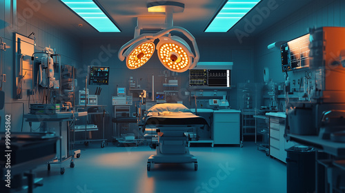 Sala operacyjna, w której technologia spotyka się z precyzją, jest wyposażona w najnowocześniejszy sprzęt medyczny.
