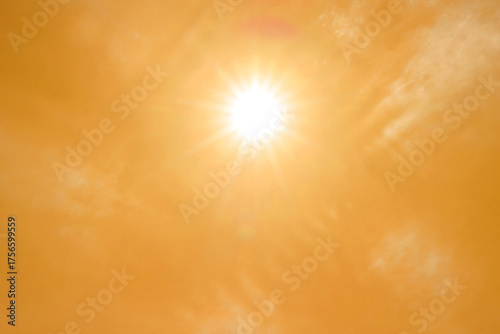 Bright sun in orange sky during hot summer weather. Extremely high temperature