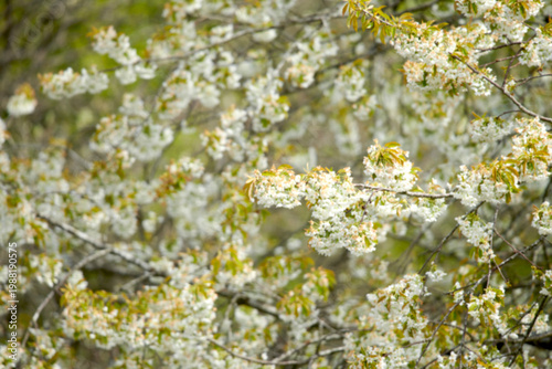Nature, tree and flowers in garden for aesthetic, blossom and botany in backyard. Spiraea thunbergii, background and morning with petals, bush and floral plant for environment, outdoor or growth
