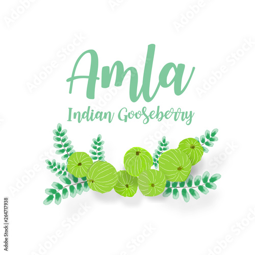 Watercolor Indian gooseberry, Phyllanthus emblica or amla isolated on white background, Vector illustration