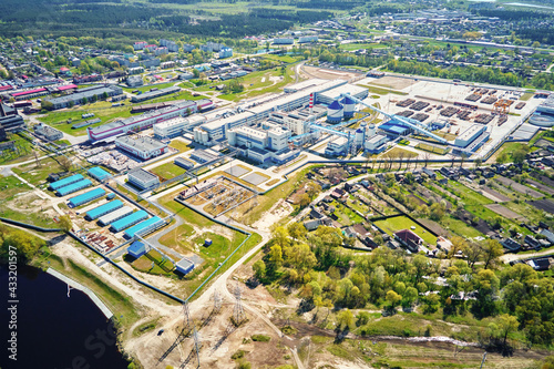 Aerial view of modern paper factory in the city